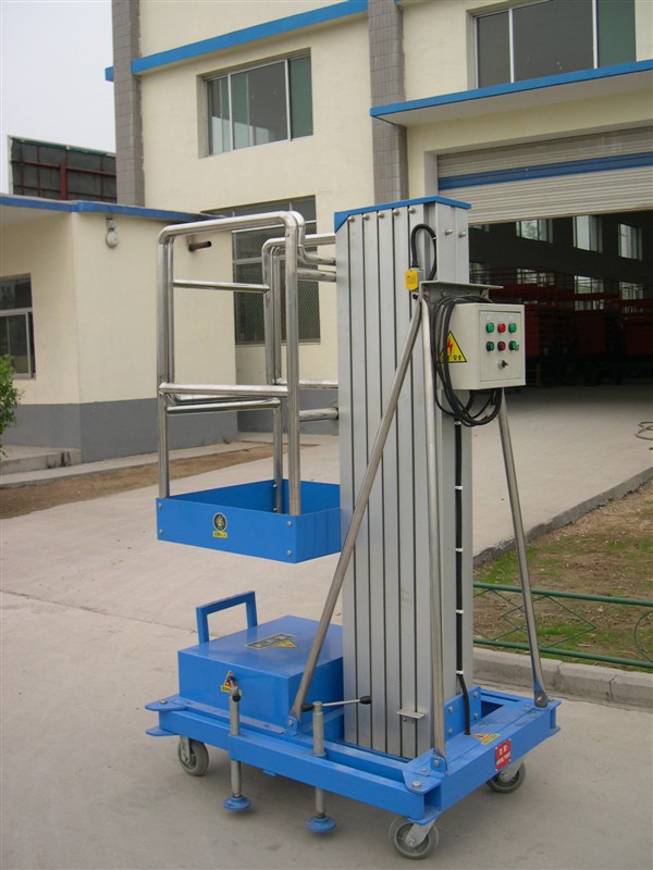 本產(chǎn)品為鋁合金輕便單人系列高空作業(yè)平臺,液壓升降,安全可靠,工作高度可達12米,載重150KG,采用插裝支腿,并于智能電控互鎖,確保安全。升降臺體積小,重量輕,移動特別靈活方便,可以非常容易地通過普通房道及電梯門。各項性能指標符合歐洲行業(yè)標準。單桅柱系列機型可以制造成伸縮式,平臺延伸0.6米,方便解決了離目標物過遠的問題。
