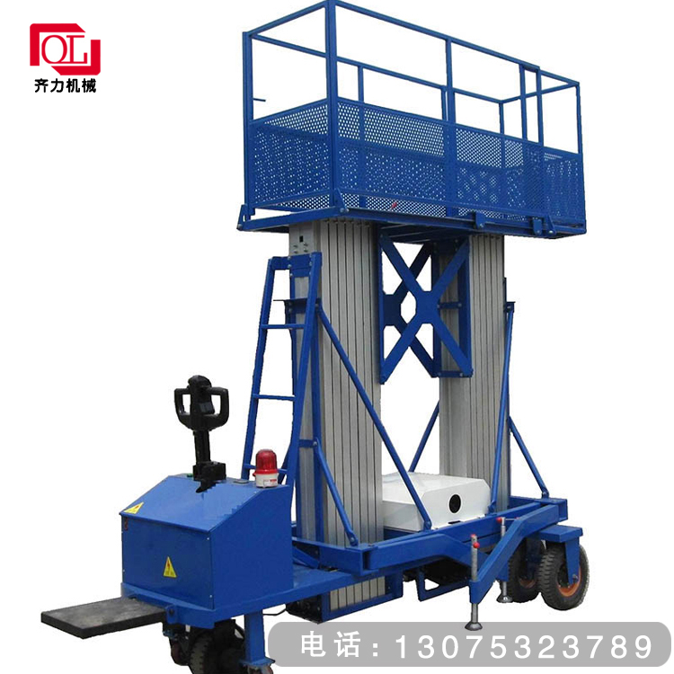 雙桅桿鋁合金升降機系列其價格比吊臂式升降臺要便宜50%,除了價格便宜外,雙人升降臺系列在狹窄通道的靈活性,使其能完成許多吊臂式升降臺不能完成的工作??蓡稳嘶螂p人操作,寬闊的平臺提供足夠的空間,便于操作人員作業(yè),擺放工具。具有*剛硬的升降桅柱系統(tǒng),其特征是:高強度的鋁合金桅桿,互鎖系統(tǒng),可伸縮柱及系數(shù)大于10:1的高強度的起重鏈,并設(shè)有鋼絲保護系統(tǒng)可用來加強力度及可靠性能,維修方便,其焊接式高強度的鋼底座適合于惡劣的工作環(huán)境。