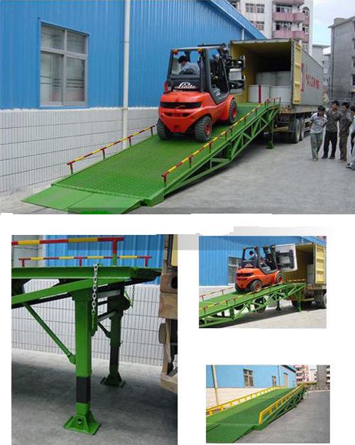 本產品是與叉車配合使用的貨物裝卸專用輔助設備。有了它,叉車能直接從地面駛入汽車車廂內部進行批量裝卸作業(yè)。產品采用人工液壓動力,不需接動力電源。只需單人操作,即可實現(xiàn)貨物的**快速裝卸。它可使企業(yè)減少大量勞動力,成倍提高裝卸作業(yè)效率,加快貨物流通速度,獲取更大經(jīng)濟效益。